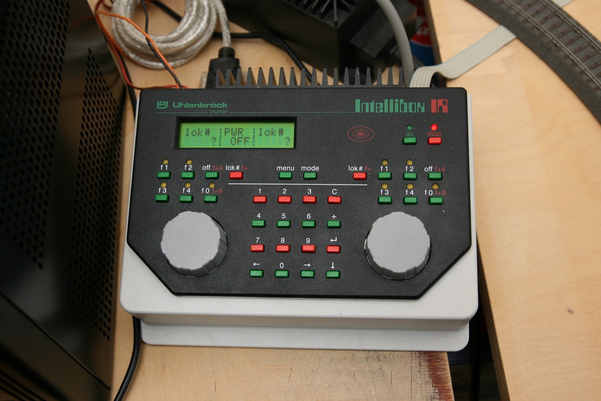 My starter pack in 2006 came with a Märklin Mobile Station, which is a small handheld device capable of controlling ten trains. I wouldn't try keeping more than two in motion at once though. I quickly upgraded to an Uhlenbrock Intellibox, one of the more reasonably priced control devices available. It didn't have a lot of fancy features, but I was going to implement those myself on the computer anyway. I was happy with it for several years, and it's still my backup control device.