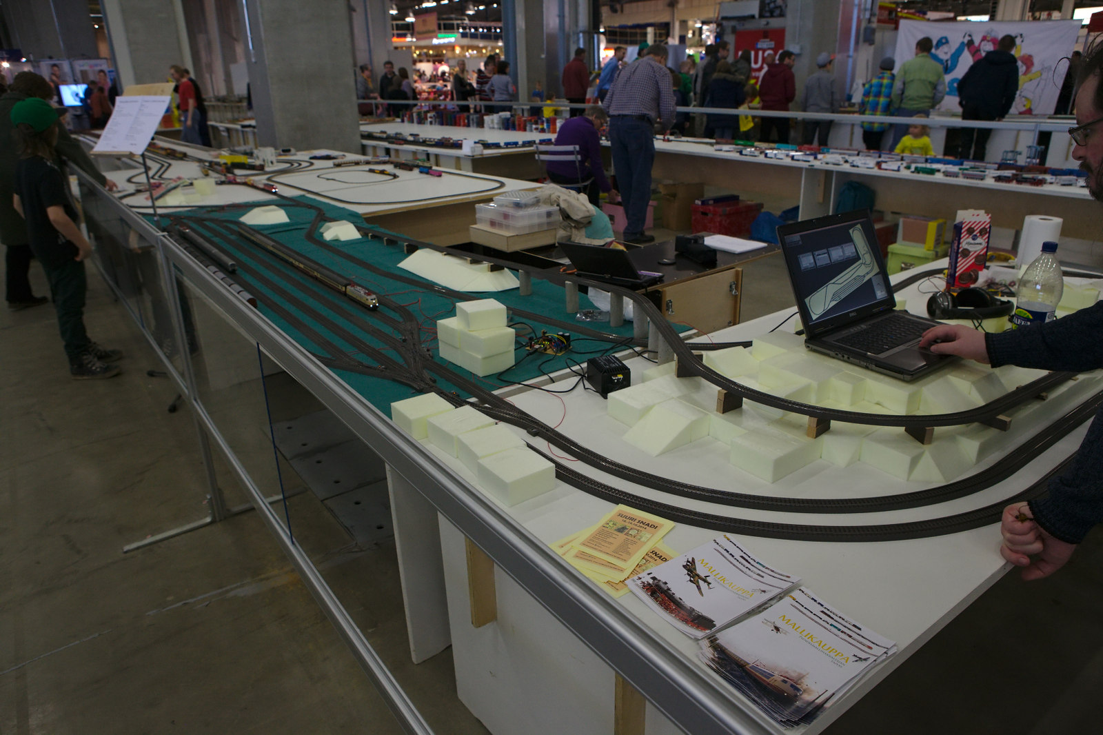 At ModelExpo I was asked to come to the other big model railway even of the year as well, and of course I accepted. The available table sizes were different from ModelExpo, so a new layout was needed. Having learned from my mistakes at ModelExpo and improved the control software considerably, this layout was designed to allow a variety of operations and includes a terminus station attached to a long single-track line, for the first time in the history of my model railways.